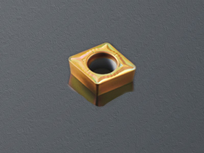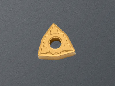 Enables medium roughing of hardened steel in combination with coating and grade AC503U. Reduces heat generation and enables deep cutting (ap = 1–3 mm) of hardened steel by using a wide neutral ground chipbreaker (rake angle: 4°) and sharp edge. Discharges chips smoothly.